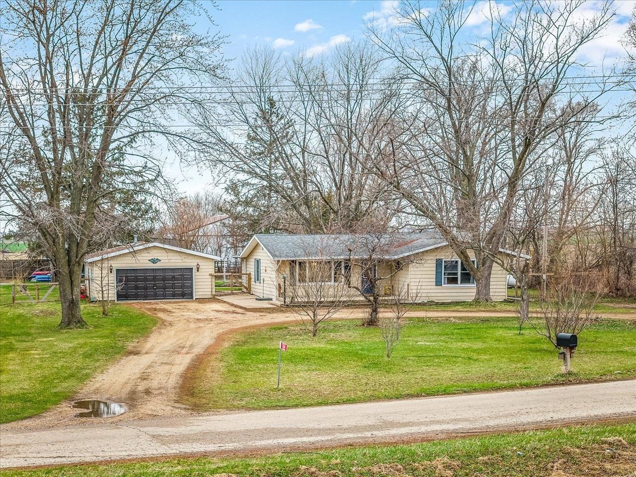 Welcome to country living with in-town conveniences, set on nearly one acre in the Town of Turtle and located within the highly sought-after Clinton School District. This 3-bedroom, 1.5-bath home offers a functional layout with durable LVP flooring and a kitchen designed for everyday ease, featuring a pantry and additional storage tucked beneath the island. A bright four-season room provides a peaceful place to unwind while taking in the surrounding landscape. Step outside and enjoy a property that's ready for outdoor living, complete with established fruit trees including apple, peach, plum, and pear, along with wild cherry trees. Whether you're entertaining, gardening, or simply enjoying the space, this setting offers flexibility and charm. The heated and insulated 24x26 garage with 240 electrical service provides excellent space for hobbies, projects, or additional storage. Additional updates include a tankless water heater and a newer roof installed in 2022.
